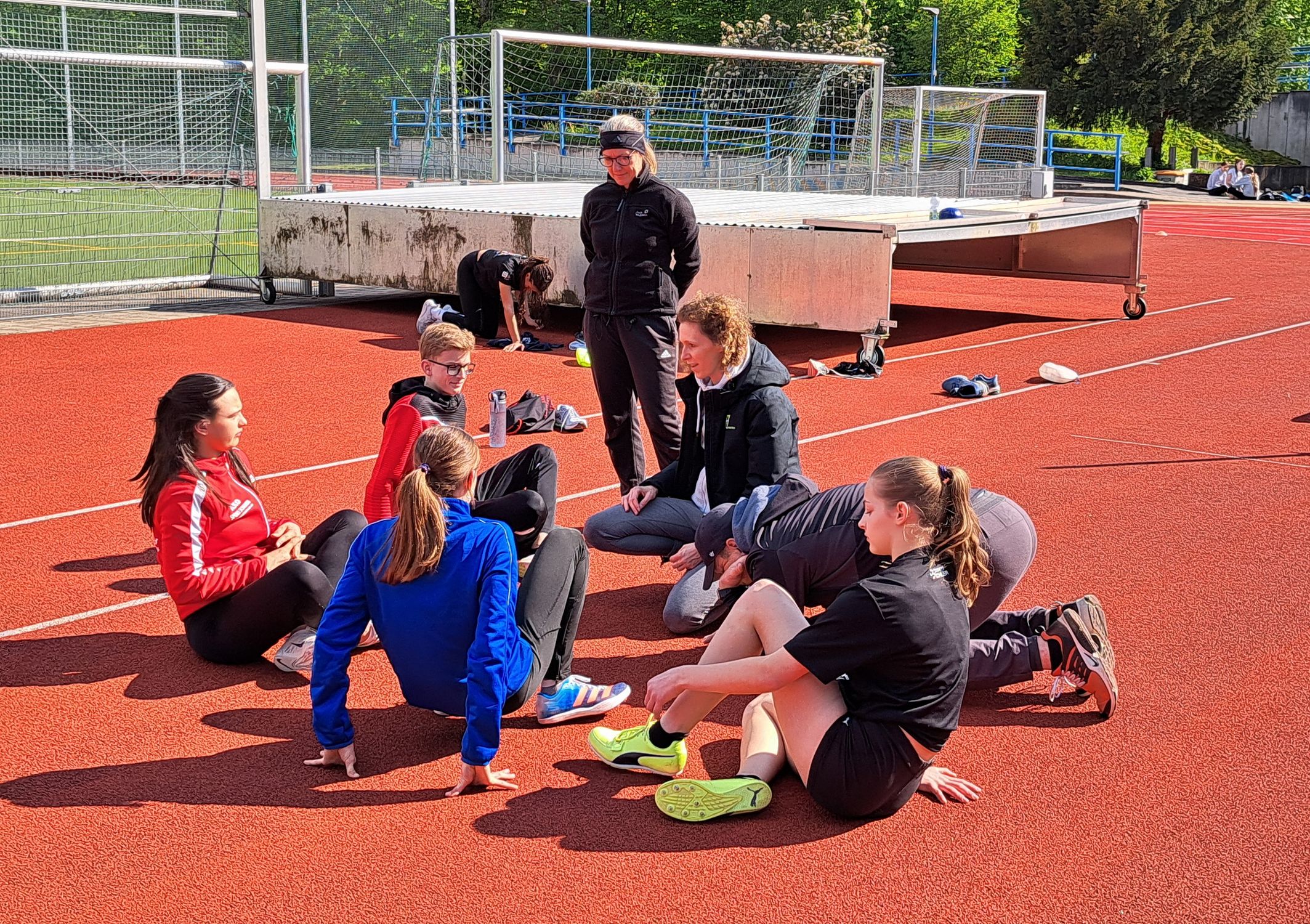 Mit kurzen Aufenthalten in der Halle zum Spielen, Mobilisieren oder zum Sprungkrafttraining war es dennoch auszuhalten, so dass vom Techniktraining zur Wettkampfvorbereitung doch das meiste durchgeführt werden konnte. Wettkampfsprünge und Starttraining mit Jennifer Klein, Cathleen Tschirch und Volker Zahn für die Sprint-Springer, Schnelligkeitstraining und verschiedene Ausdauerformen für die Läufergruppe unter Christoph Thürkow standen ebenso auf dem Programm wie diverse Tipps zur Regeneration und zur weiteren Förderung durch die Leichtathletik Baden-Württemberg. Die anspruchsvollen Landeskadernormen haben eine Hand voll der Athlet:innen schon kurz nach Saisoneinstieg in der Tasche.
