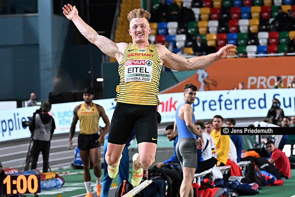 Ebenfalls nur ganz knapp verpasste Manuel Eitel vom SSV Ulm 1846 im Siebenkampf eine Medaille. Nach 8,23 Sekunden über 60 Meter Hürden und 4,70 Meter im Stabhochsprung lag er bis zur letzten Disziplin, dem 1.000 Meter-Lauf, auf dem Bronze-Rang. Erst im abschließenden 1.000 Meter-Lauf musste er Risto Lillemets (Estland) trotz neuer persönlicher Bestzeit von 2:44,45 Minuten noch an sich vorbeiziehen lassen. Platz vier kann der 26-jährige Ulmer trotzdem als großen Erfolg verbuchen, hat er doch mit 6.047 Punkten zum ersten Mal in der Halle die 6.000 Punkte-Grenze überboten und drei neue Bestmarken in den sieben Disziplinen aufgestellt.