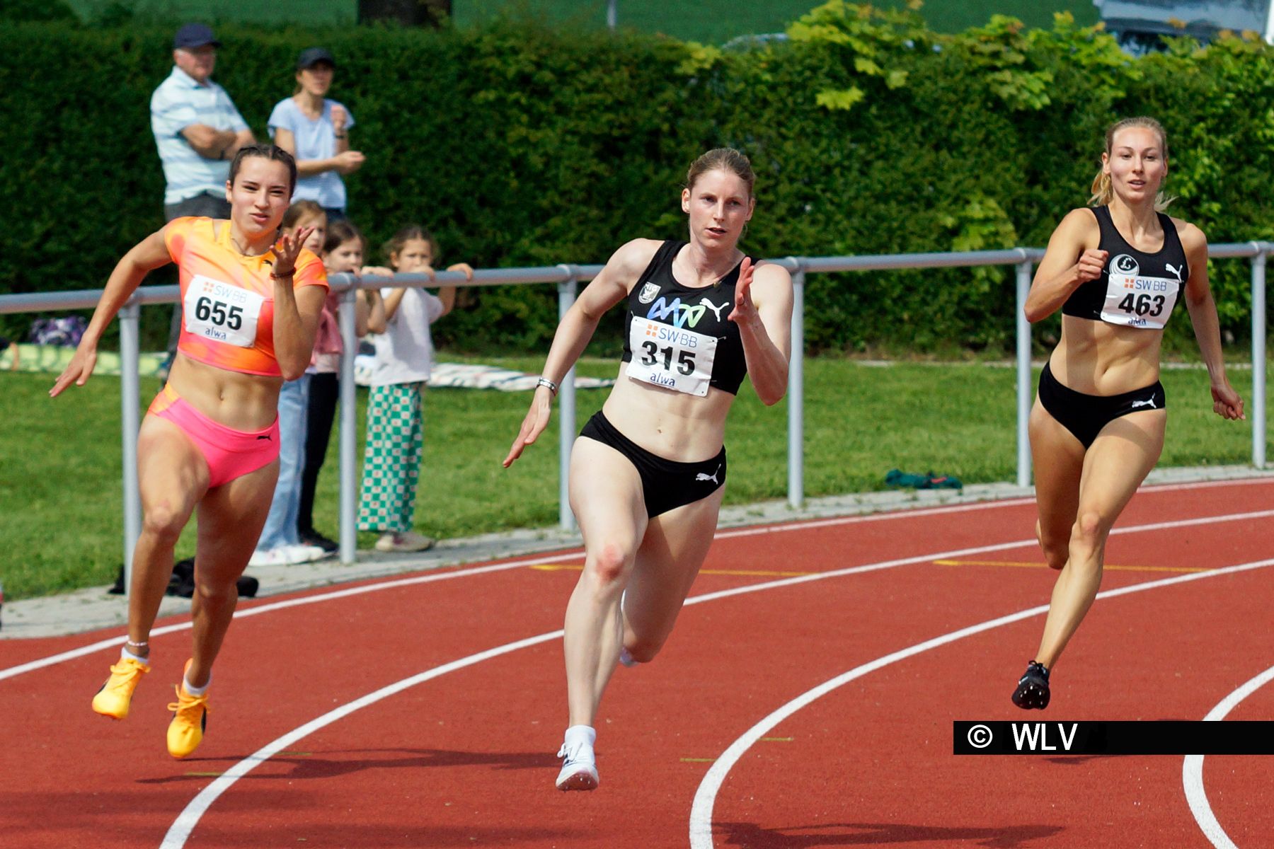 Auch bei den Männern gab es einen Doppelsieger über 100 und 200 Meter. Niclas Schmid (LG Region Karlsruhe) setzte sich klar in 10,76 beziehungsweise 21,50 Sekunden durch. Die Siegerin in der zahlenmäßig großen Konkurrenz der Frauen Lisa Nippgen sprintete zu Saisonbeginn diese Strecken in guten 11,62 und 23,41 Sekunden. Auf der 200 Meter-Strecke lag sie damit vor Rosina Schneider, die nach ihrem Hürdensprint noch die halbe Stadionrunde in 23,81 Sekunden lief.