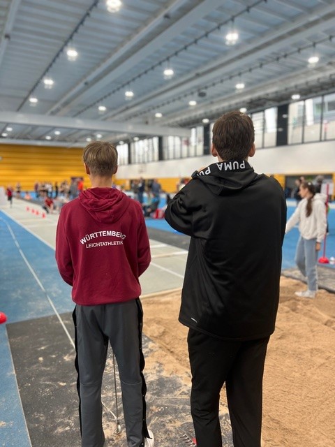 Die große Anzahl an Teilnehmern machte ein Aufteilen in zwei Gruppen notwendig. Bereits sehr früh am Sonntag morgen machten sich gleich 68 Athletinnen und Athleten samt Heimtrainern auf in die Molly-Schauffele-Halle in Stuttgart, um sich im 5er Sprunglauf aus dem Stand miteinander zu messen. Sehr gut präsentierte sich die Gewinnerin der W12 von der LG Teck. Melinda Denes-Hügel sicherte sich mit starken 10,91 Metern den Sieg mit knapp 20 Zentimeter Vorsprung vor Xenja Krivoklub vom TV Eppingen. Auch in der W13 konnte sich mit Valentina Wolf eine Athletin der LG Teckmit gesprungenen 11,78 Meter an die Spitze setzen. In der M12 sicherte sich Lukas Fritzsche (Spvgg Weil der Stadt) mit 10,92 Metern den ersten Platz vor Joshua Schrof (TSV Schmiden, 10,74 m) und Veli Mall (LG Teck, 10,48 m). Die zwei vordersten Plätze der M13 gingen an die Brüder Jonas und David Murschel von der LG Hohenfels. Jonas siegte mit 20 Zentimeter Vorsprung und 11,57 Meter Siegesweite.