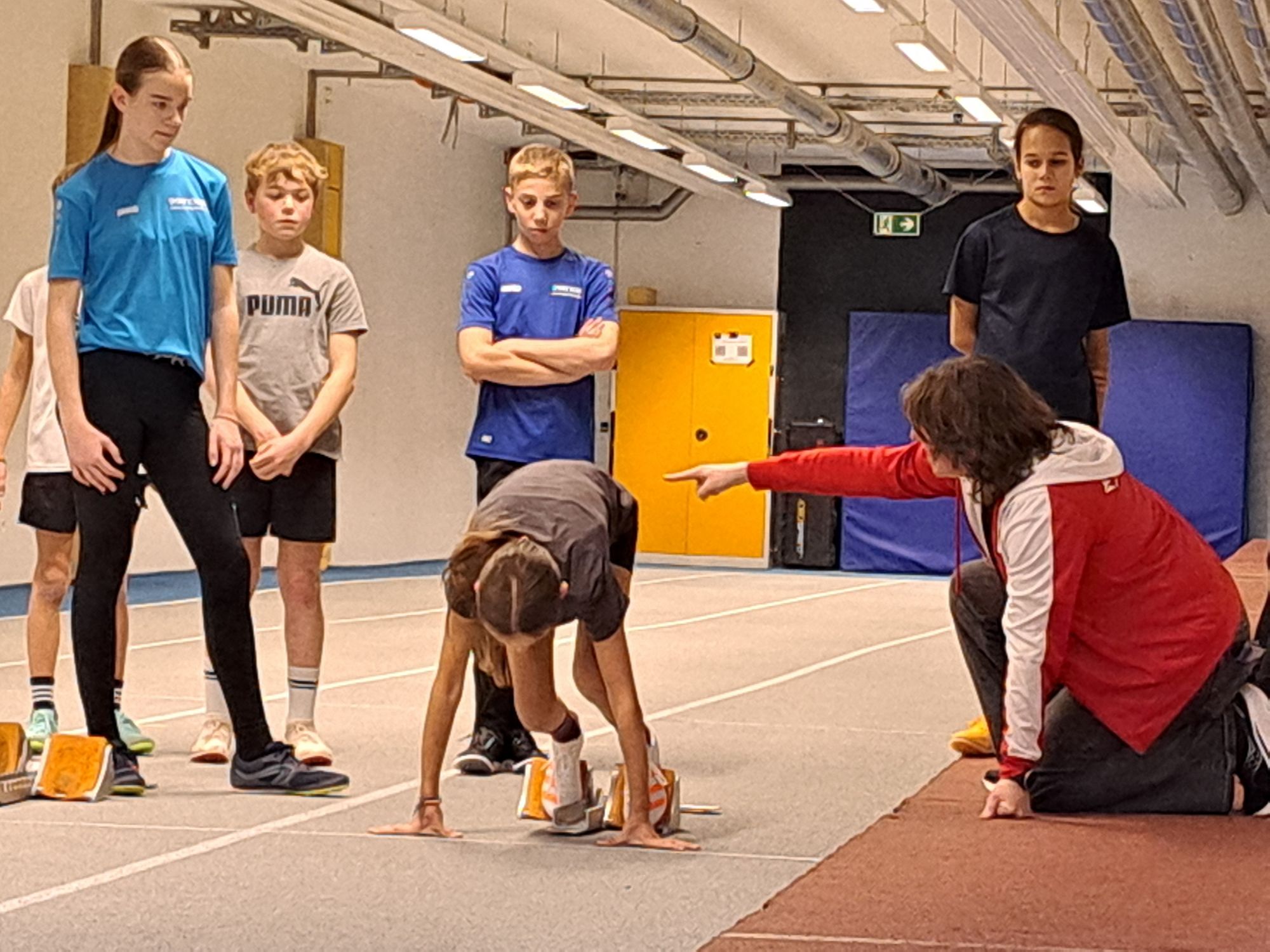 Schnell verflog die Ehrfurcht vor den „heiligen Hallen“ und es wurde unter der Anleitung von Marius Noller (Winnenden), Kathrin Staudenmaier (Waiblingen) und Heiko Wolf (Schmiden) fleißig am Sprintstart, den Hürden und dem Weitsprung geübt: „Endlich mal Spikes anziehen :-)“.